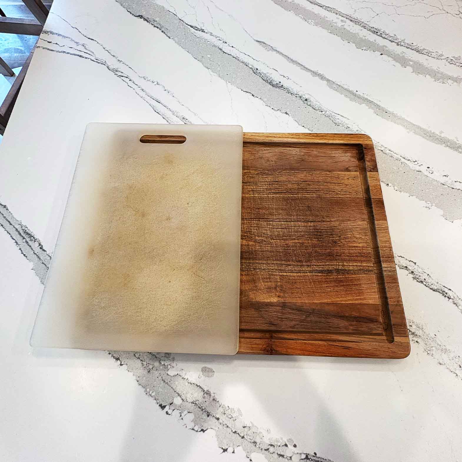 According to Food&Wine and Dr. Charles Gerba, the average kitchen cutting board can harbor up to 200 times more fecal bacteria than a toilet seat. Wooden and plastic boards develop deep knife grooves over time, trapping bacteria and making them more difficult to sanitize thoroughly. And, you can't just throw the wooden board in the dishwasher.